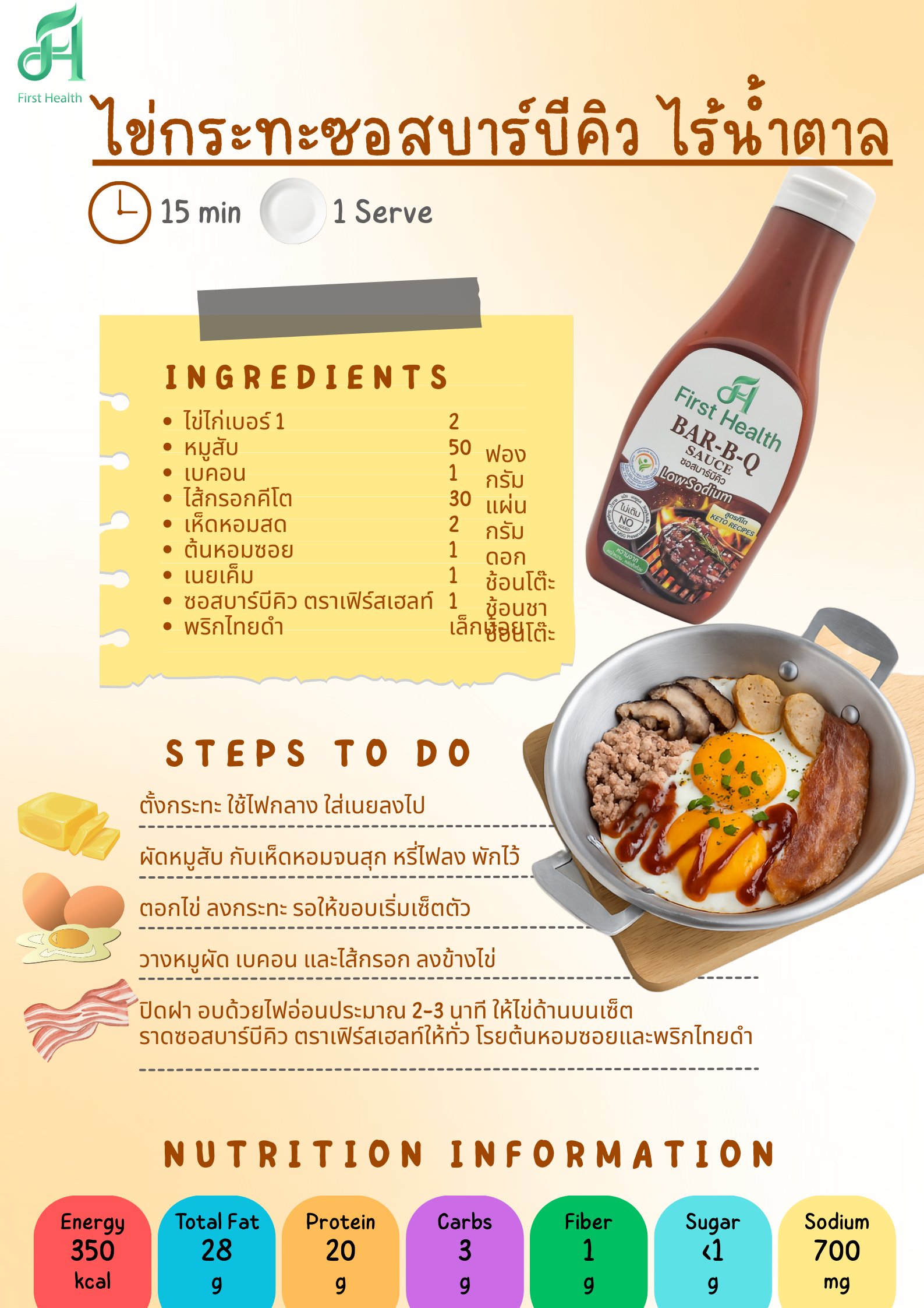 1. ไข่กระทะซอสบาร์บีคูไร้น้ำตาล
